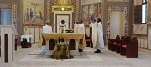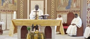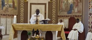 Autour de ses frères dans le sacerdoce, fidèles et amis, le père Paul Marie MBA de la communauté des Béatitudes qui a dit l’homélie, a rendu grâce à Dieu pour la confiance et le oui de l’abbé Serge Patrick MABICKASSA en souhaitant que le Seigneur lui fasse la grâce d’avoir une âme toujours vivante et brulante.