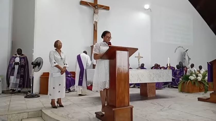 La messe s’est terminée par une oraison funèbre portée par la fille cadette de la défunte, Brigitte ANGUILE-MBA.